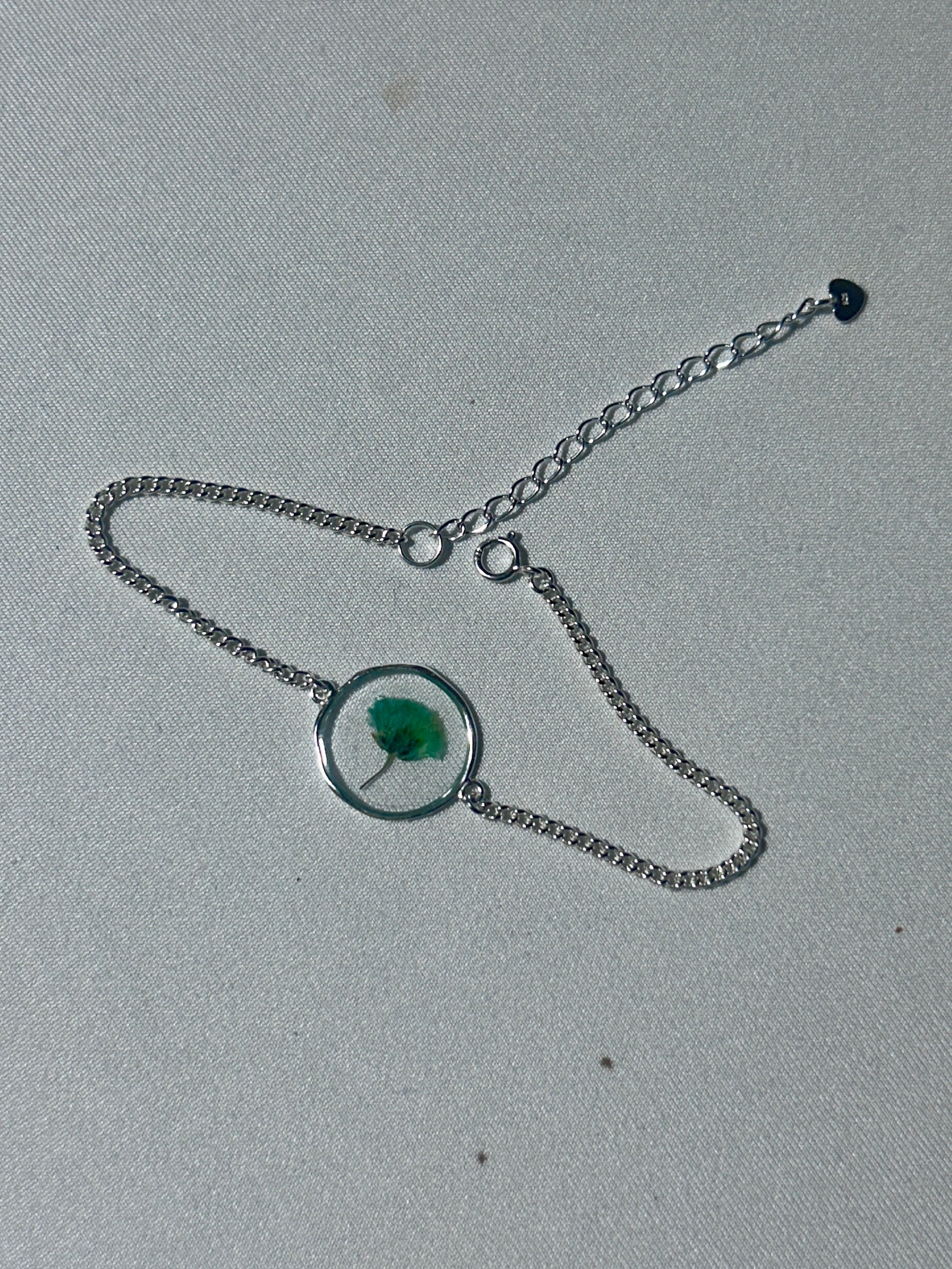 Real pressed plum blossom not circular charm bracelet.