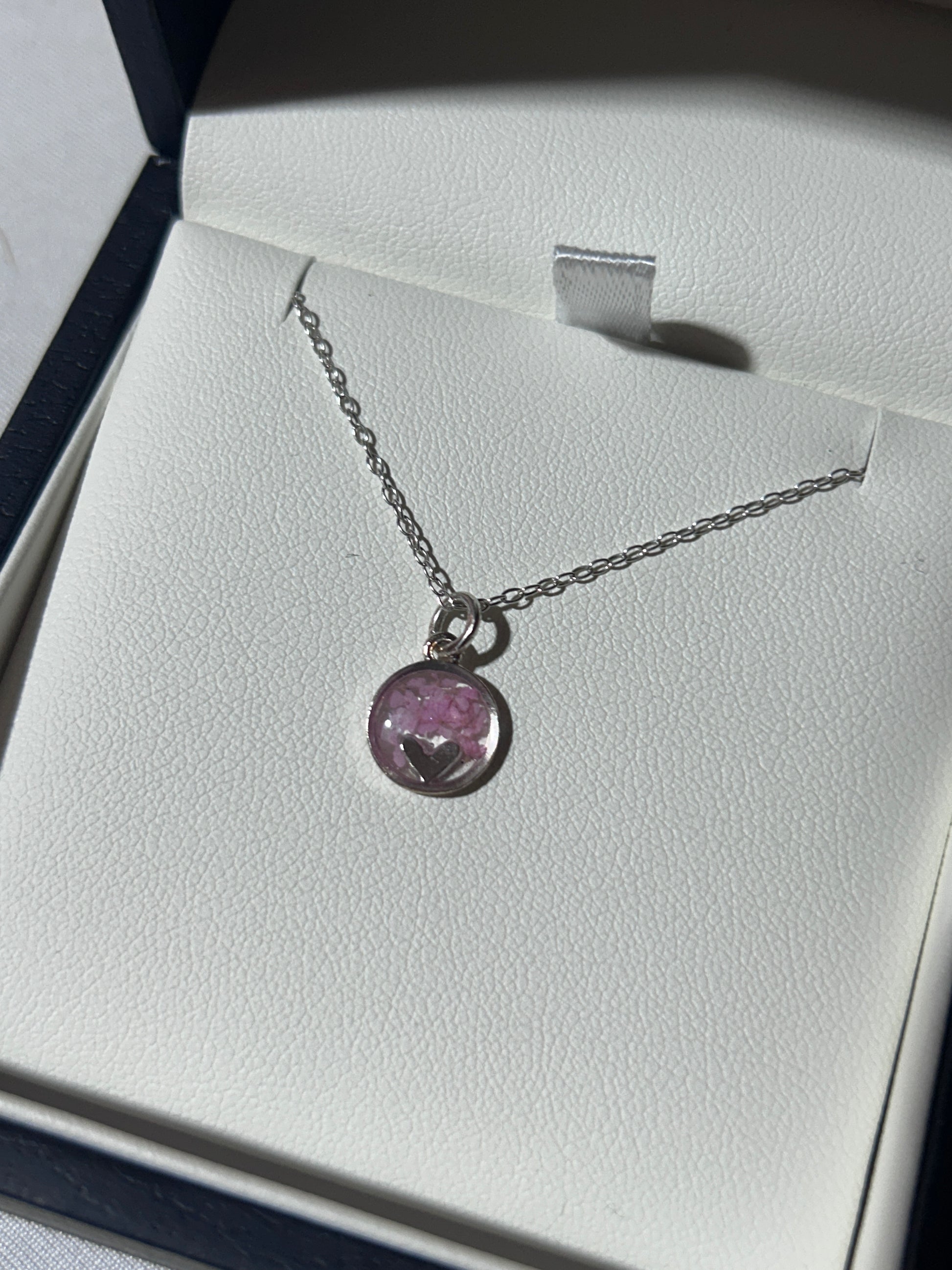 Pink Cow Parsley Petals Heart in Circle Necklace